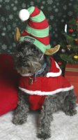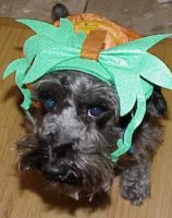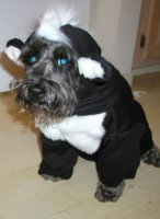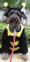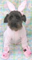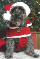 We were honored to have had Barney for a little more than six wonderful years. He was an ambassador for rescue dogs... he fund raised in kissing booths both for rescue groups as well as our local dogpark. Many times he'd met people who'd say what a great little dog and then were amazed to learn this wonderful little guy was a rescued dog. Every year at the Redondo Beach Dogpark Halloween Hoe Down.... we'd pick up some costume for Barney... he was everything from Dumbo, to a skunk to a bumblebee, to a cow. He was always our poster boy for photo fund raisers... ok maybe it was because his mom was the webmaster but no one could deny that no other dog could have ever made a better Santa Claus or Easter Bunny than Barney. He lived and strived for the attention... was quite the ham. Whenever he came to adoptions with me.... someone always wanted to adopt him.. I'd have to tell them this one has a home... but those other schnauzers over there need homes. I remember one lady strolling her cart at Petco and telling her friend... look at that little black dog his eyes just say take me home... of course he had a home where he was most cherished.