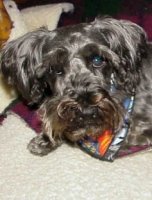 Barney came into our life in March 2000. He had been found by a vet tech in the middle of a busy intersection in January, same old story, no collar, no tags. Ads were placed in the newspaper and fliers were posted at various locations, I remember even seeing his flier at the Carson shelter some months before. In mid March, about a month after our little Mr. Nick had died, I received an email with the flier on this found schnauzer possibly a mix now needing to find new a home. He had been in boarding for two months while they unsuccessfully searched for his owners and were looking for a rescue to take him. We called and were told he was being adopted that day... later I called and to verify he was adopted and it turned out the people changed their mind so we went to get our little man.When Barney came home he strutted into the place like he owned the place. He made himself right at home curling in Mr. Nick's dogbed.... I had never seen such a confident little dog... he just seemed to think he belonged. Although he was a dog we picked up with the full intentions of placing him for adoption but after staying with us for a few weeks he grabbed us by the heartstrings and never let go. Needless to say he never went to adoptions... atleast not as a dog that was for adoption. The little guy that strutted in like he belonged, knew he did belong before we did. I was always grateful I had the good sense to keep my precious little guy.